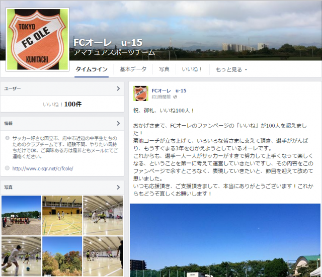 おかげさまで、FCオーレのファンページの「いいね」が100人を超えました!