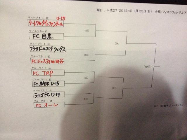 東京都大会グループE-Gの結果が出揃って、決勝トーナメントの組み合わせが決定しました。
