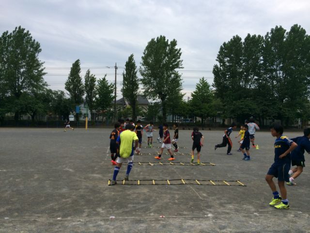 ランニング、ラダートレーニングの後、基礎練、ドリブル練、1対1プレス、2対2プレスなど。