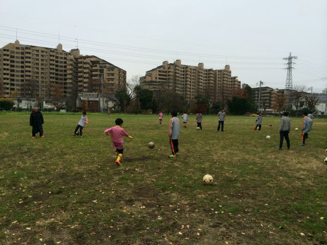 ランニングの後、インサイドキック、インステップキックを徹底的に練習。最後シュート練習で終わり。