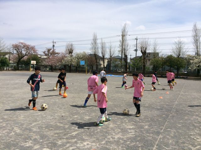 ランニングの後、基礎練、ドリブル練、その後一年はラダーメニュー、全学年インサイド練習。最後はポゼッション練習。