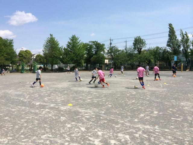 今日は午後は国立四小練習、サテライト➕一年生。ランニング、ドリブル練習のあと、パス練習、3チームに分かれてのパス回しゲーム。