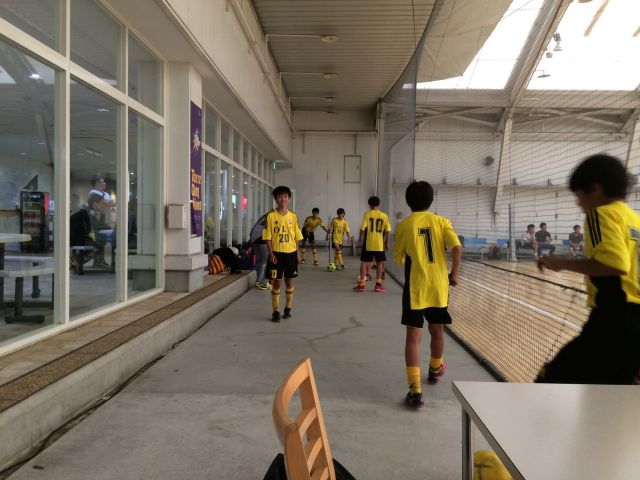 今から一年生イエロー、フットサルサテライトリーグ、対GA戦。アップ中です。