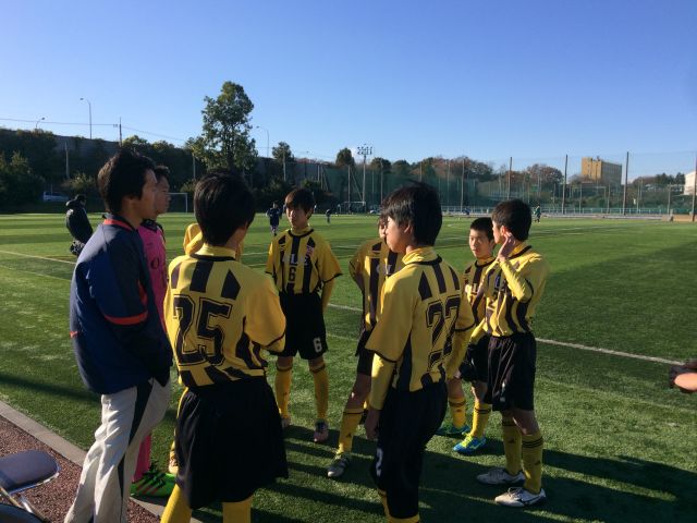 20分ケイゴ、オフサイドぎりぎりのところで抜け出して完全にフリーで持ち込み、キーパー1対1、これを右に交わして追いかけるキーパーに追いつかれる前に無人のゴールへ流し込み勝ち越し点ゲット!雄叫びをあげるケイゴ。さて、まだ一点差。残り時間も攻めたてるも、ケイゴがシュート打つ際、軸足ひねって続行不能へ。その後前線でプレスをかけ続けたタケルも足をつって続行不能、なんとヒロトも同時に足をつって倒れている!広いグランドでプレスをかけ続けた頑張りは素晴らしかった。まあ、これは全員に言えるな。