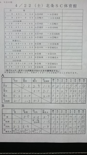 ※同日行われたAブロックからは先の坂雲cupで4位になった鴨川中学が県大会進出です。