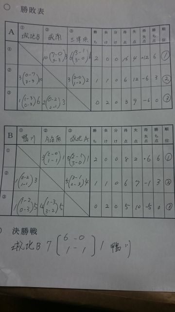 3チームずつのリーグ戦を行い1位どおしの決勝で決する大会形式