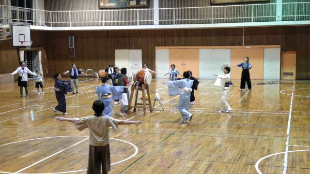 3年ぶりの太鼓なので総務部長も一緒に練習中