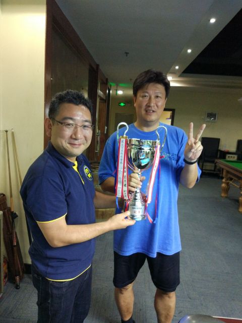 4月の月例会はMZ教授が新人AKさんとの優勝決定戦を制して、二回目の連覇で見事通算四度目の優勝を飾りました。ビリヤードが大好きというマイキュー持参のAKさんの娘さんが初参加され、練習の傍らお父さんに熱い声援を送っていました。AKさんは「小さな応援団」の前で9番ボールをポケットすれば優勝というところまでMZ教授を追い詰めましたが、最後は残念ながら初優勝を逃しました。この悔しさをバネに来月の月例会も頑張ってください。