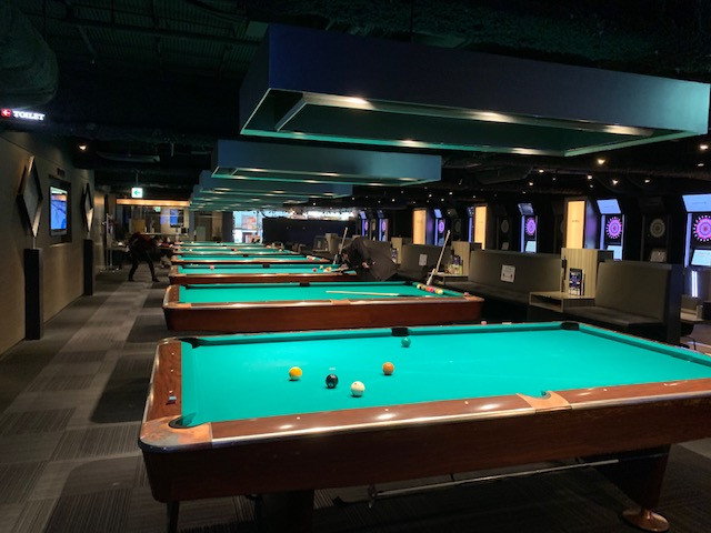 館内の様子我が師匠は日本に戻って来てからは、3C(スリークッション)と言う穴の無いビリヤードに専念しており、久しくポケットビリヤードを撞いていないと言っておりましたが、GBCで常に優勝争いをしてきたレベルに衰えはありませんでした。何点かワンポイントアドバイスもいただいたので、忘れずに今後に活かしていきたいです。