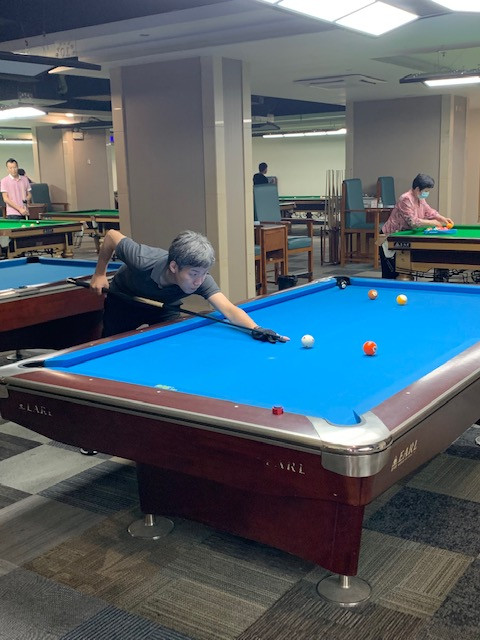 マイキューに慣れるのに多少苦労しているようで、I城隊長は「彼が借り物のキューを使っていた時の方が脅威を感じた」とコメントしています。これから自分なりの撞き方やタイミングを身に付けていくと思います。期待しています。