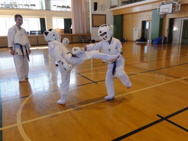 練習も、寒いときのメニューに切り替えて、基本の動きの確認や、初段の受験技の約束組手、護身術なども混ぜながらの練習としました。