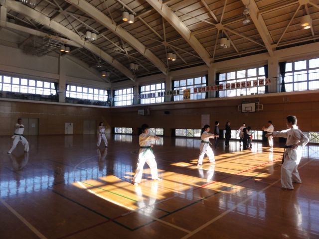 学校の都合で3月上旬が利用できないことから、皆には昇級試験の型等の復習をしました。