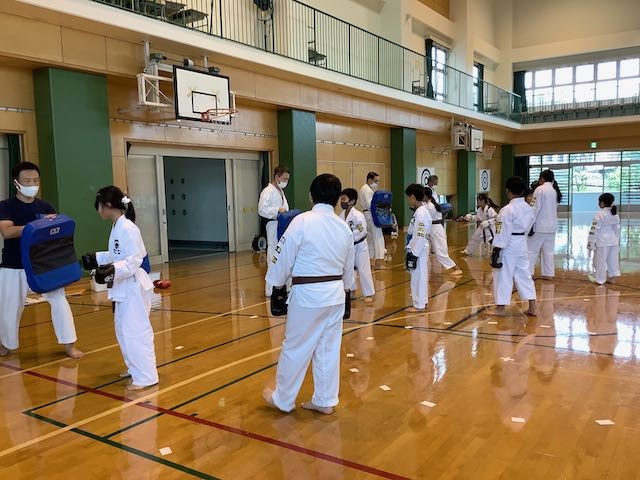 組手はしばらく対面の自由組手は避けざるをえないので、その代わりにミットの練習を実施しています。