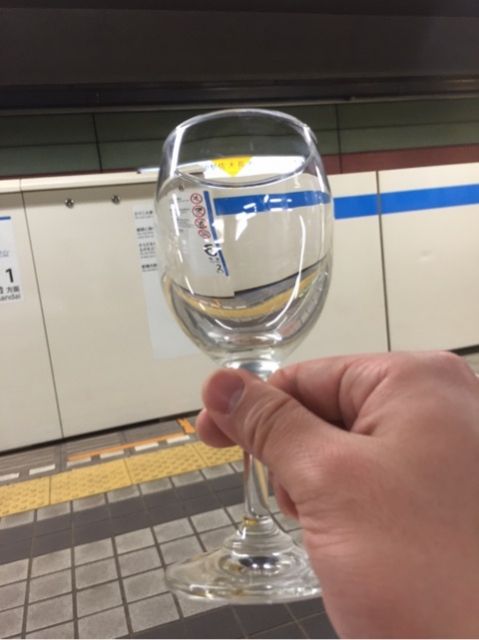 ホームでワイングラス片手に