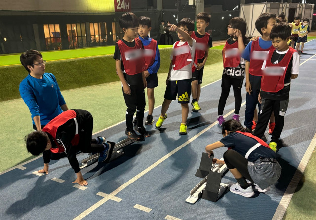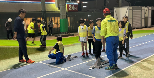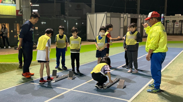 3.4年生はスターティングブロックの使い方を教わっていました。