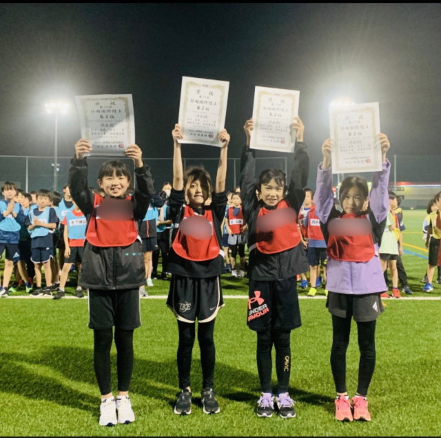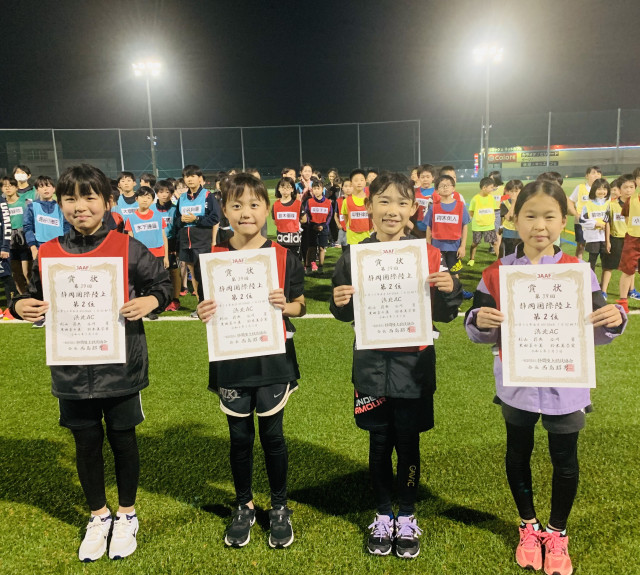 5月7日(火)の練習開始時に静岡国際陸上で2位入賞した、3,4年女子リレーチームの表彰を行いました。
