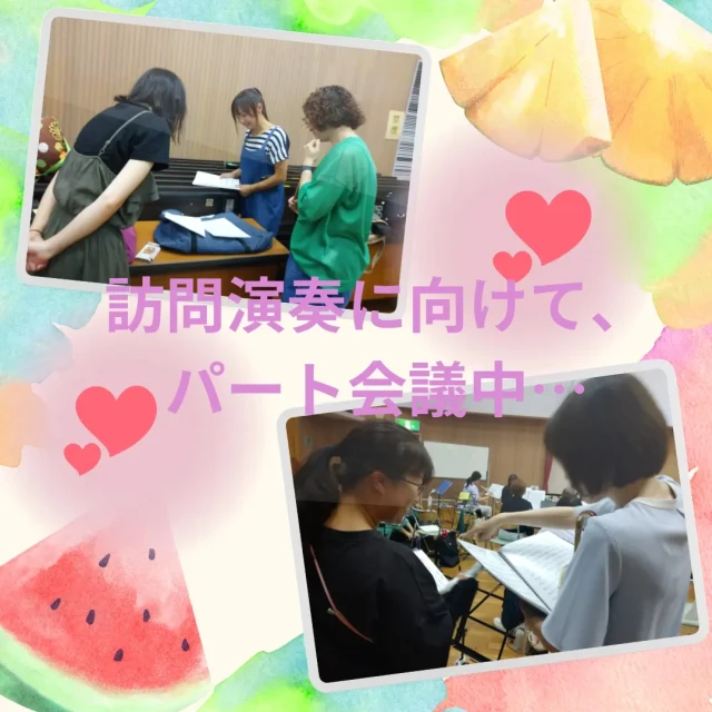 今月は2ヶ所の訪問演奏を控え、パート毎に綿密に打合せしながら、合奏に臨みました⤴️