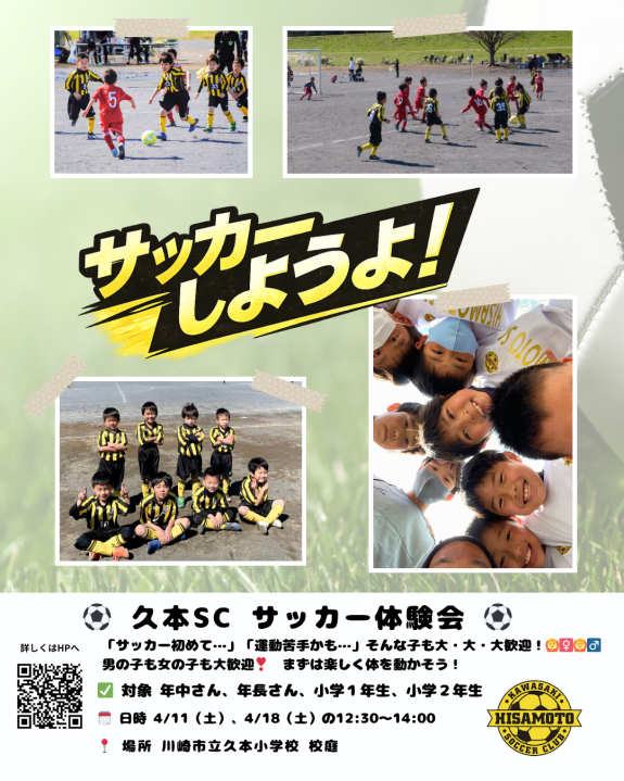 【新1年生、2年生・キンダー対象】春のサッカー体験会開催!「はじめて」の挑戦を応援します!