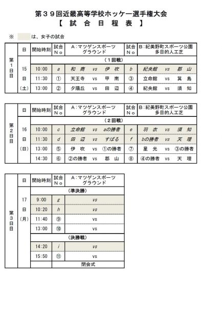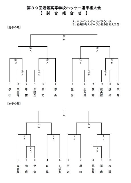 平成29年度近畿高等学校ホッケー選手権大会の組み合わせについて