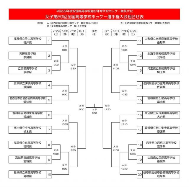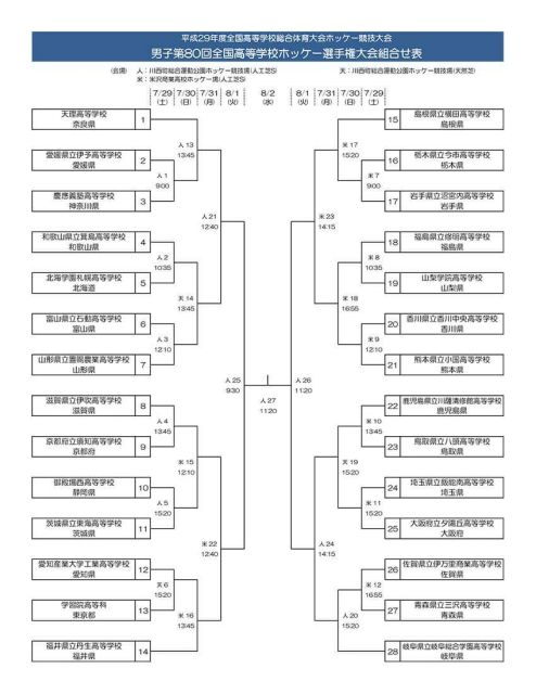 平成29年度近畿高等学校ホッケー選手権大会の組み合わせについて