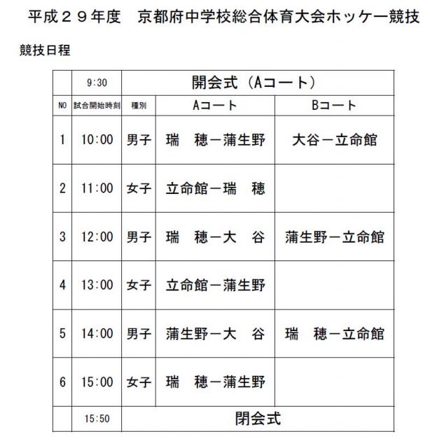 平成29年度全中京都予選(京都府中学校総合体育大会ホッケー競技の部)について