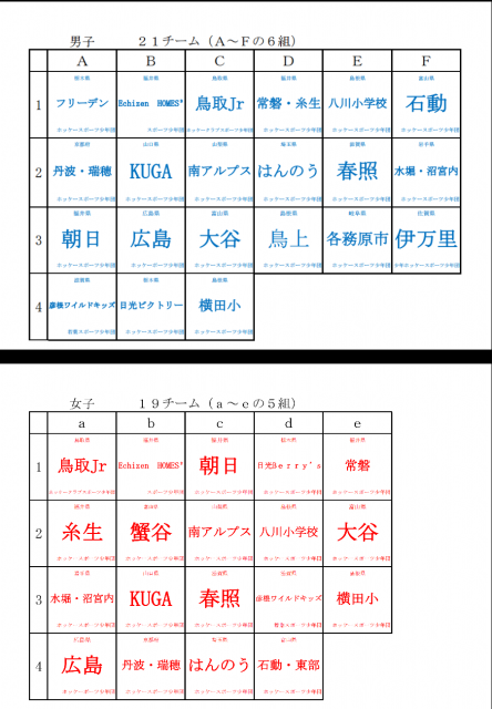 全国スポーツ少年団ホッケー交流会の組み合わせ、試合日程について
