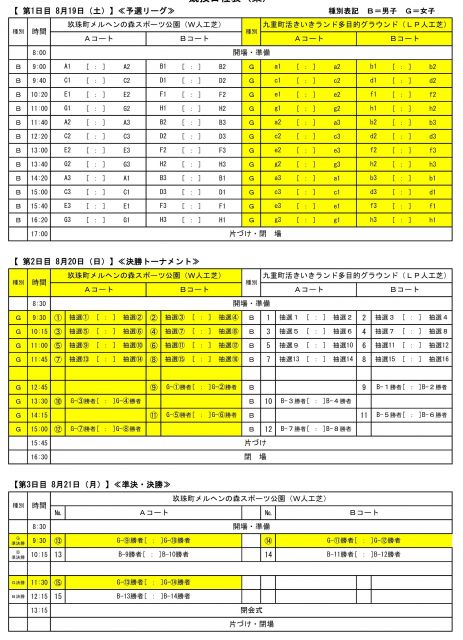 8月19日(土)から21日(月)にかけて大分県玖珠町、九重町で開催される標記大会の組み合わせが発表されました。