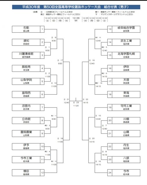 12月22日(土)から開催される2018全国高等学校選抜大会の組み合わせが発表されました。