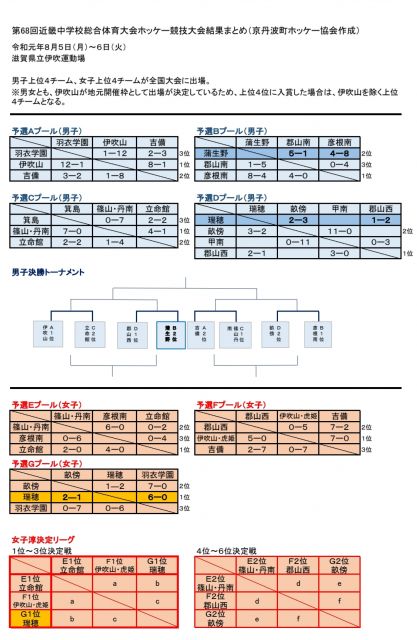 第68回近畿中学校総合体育大会ホッケー競技の組み合わせ及び試合日程 基本情報 コメント