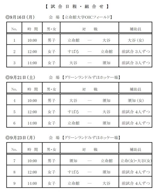 京都府高等学校ホッケー選手権大会(選抜京都予選)の試合日程について