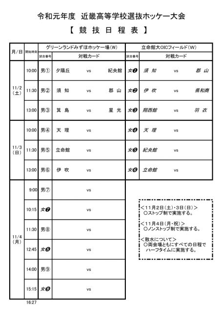 近畿高等学校選抜ホッケー大会の組み合わせについて
