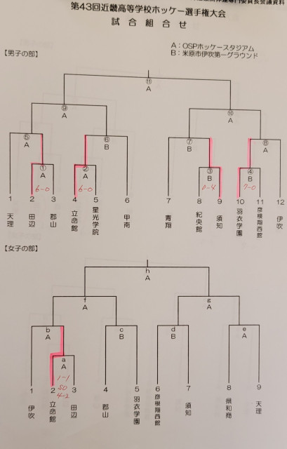 第43回近畿高等学校ホッケー選手権大会(令和3年7月16日(金)~18日(日))初日の結果