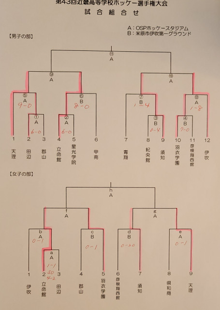 第43回近畿高等学校ホッケー選手権大会(令和3年7月16日(金)~18日(日)) 2日目(17日)の結果