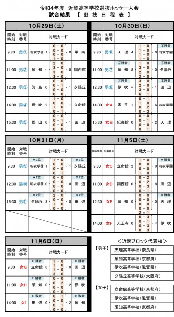 近畿高等学校選抜ホッケー大会(選抜近畿予選)の結果