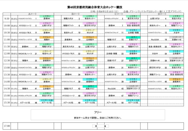第46回京都府民総合体育大会ホッケー競技の部の組み合わせ等について
