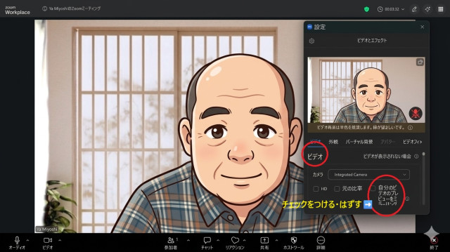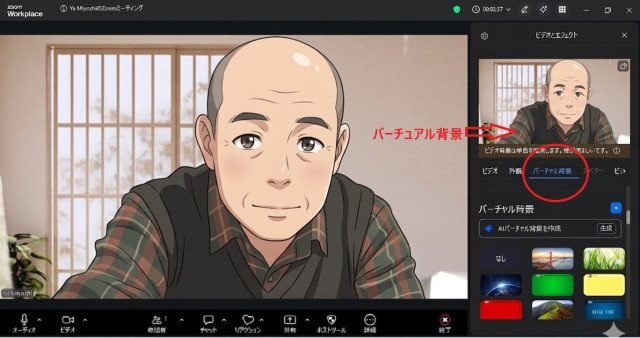 2026/4月現在 Zoomの背景画像選択、ミラーリング調整を説明する画像です。