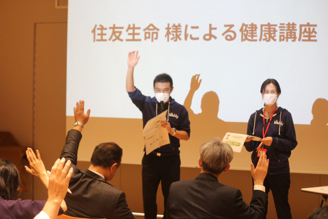 地域学校協働本部という名に恥じないように 住友生命 水戸支社 笠間支部 にも協力していただいて、健康セミナーを行うことができました。