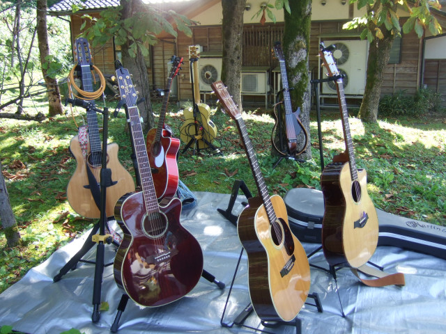 日差しが強くなってきて、日陰に避難したギター達。なかなかいいワンショットやねぇ~。^^
