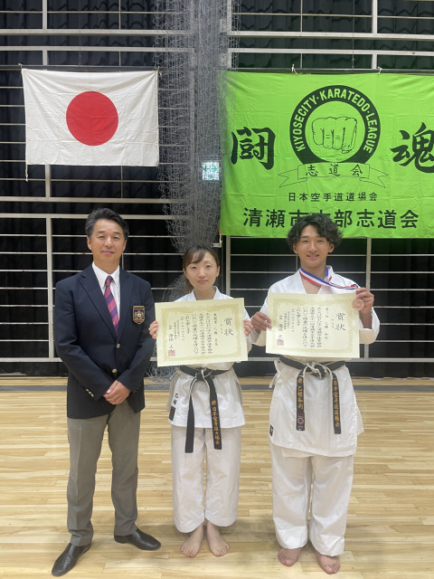当会からは、瀧川博さん、乙幡和利先輩、乙幡美菜先輩が出場され、乙幡和利先輩が一般の形の部で3位、乙幡美菜先輩が同じく一般形の部で敢闘賞でした。