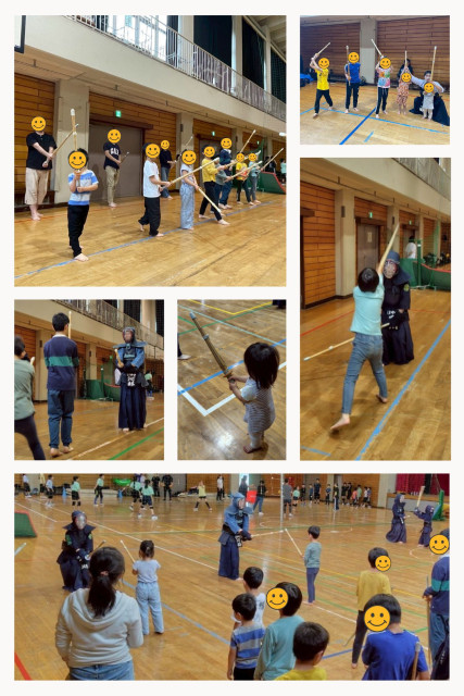 最後は防具をつけた先生たちに元気よく面や小手を打ち込んでみました。