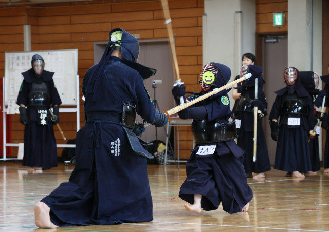 竹刀組の基本試合には、新入会の1年生も参戦!
