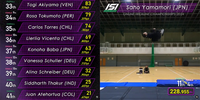 日本のスラックライントリック競技は、世界でもトップクラスなのですが、素晴らしい世界のプロ、アマ選手達の中、男女混合でこの成績は大健闘だったと思います。