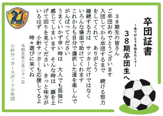 卒団生の皆さんは、自分が選択した事を楽しんで