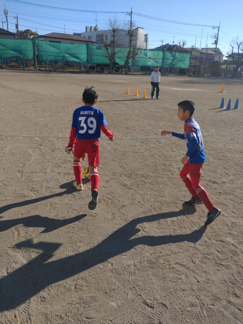 練習時間が高校サッカー選手権の決勝が行われる時間と重なってしまったため、はじめはそちらの方が気になっている選手もいましたが、練習が始まると目の前のボールにたくさん触れることで集中力が増し、冷たい風にも負けず、元気良くサッカーをすることができました。