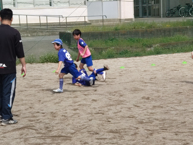 D・Eチーム(新3・2・1年生チーム)は継続してサッカーに繋がる体の使い方やドリブル、キックといった基礎練習から取り組んでいきました。反復練習にも選手達が意欲的に取り組めるのは、上達していることを自分自身で実感している表れに他なりません❗❗いつも元気な声をグラウンドいっぱいに響かせながらたくさんボールに触れ、練習の仕上げのミニゲームでは、今回も大いに盛り上がっていました😁。