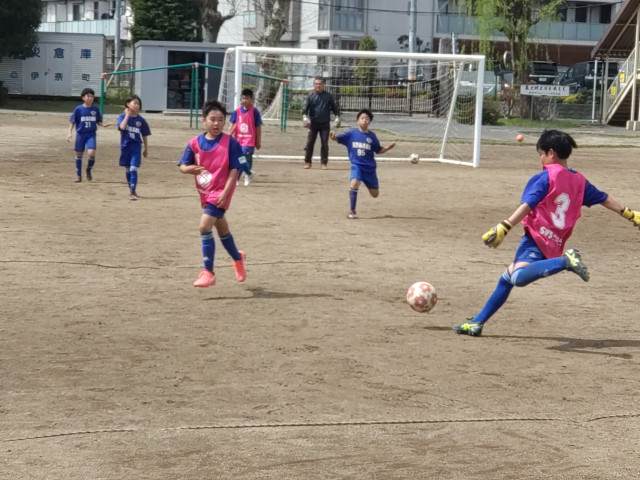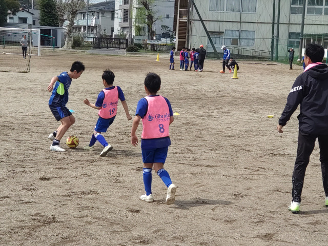 Bチームは今回も時間をかけて個人のレベルアップを図ることをテーマにして止める、蹴るの基礎練習から取り組み、その後はドリブルや1対1の対人練習を行いました。途中から新中1になった卒団生の先輩が練習に合流してくれ、後輩達の良いお手本になってくれました。在団中はあまり一緒に練習する機会が無く、ただただ上手な先輩というイメージばかりが先行していましたが、間近でプレーを見ることでボールを取り合う際の力強さや粘り強さ、プレーの連続性など、サッカーをするうえで大切なことを気づかせてくれました😳。まだまだ足元にも及ばないかもしれませんが、自分達が主体的に取り組み続け、先輩達のようなプレーができるようになれると良いですね。