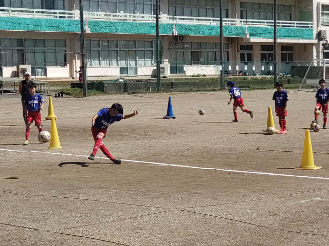 D・Eチーム(1・2年生主体チーム)は今回もたくさん体を動かし、たくさんボールに触ることができました。人数は少なかったのですが、1つ1つの練習ができるようになったことが選手達の自信とやる気を育み、更なる意欲に繋がっていることが練習に取り組む様子からも伺えました。途中から合流したCチーム(3年生チーム)の選手相手にも臆することなくプレーできることでレベルアップはさらに加速するかもしれませんね😁。