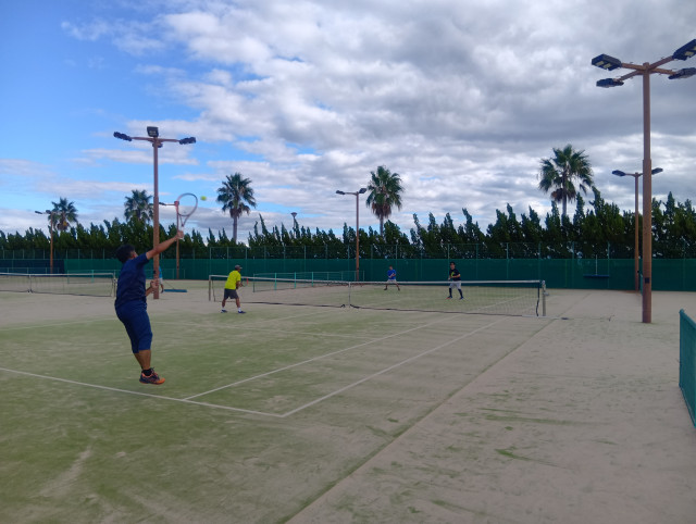 コートはキャンセルしましたが、13~16時の間の止み間で、練習することも可能です。クラブハウスで、利用申込みし、コート代を支払って下さい。(コート代は立て替えてください。)