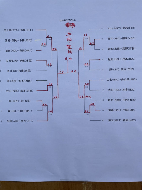 【試合結果】R4 小金井市テニス選手権(ダブルス)一般男子・壮年男子
