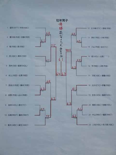 【試合結果】R5小金井市選手権ダブルス(一般男子/壮年男子)6/18開催
